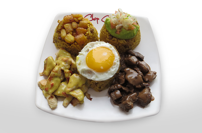 Combinación de nuestros 3 moros, camarones al ajillo y chancho en salsa criolla
