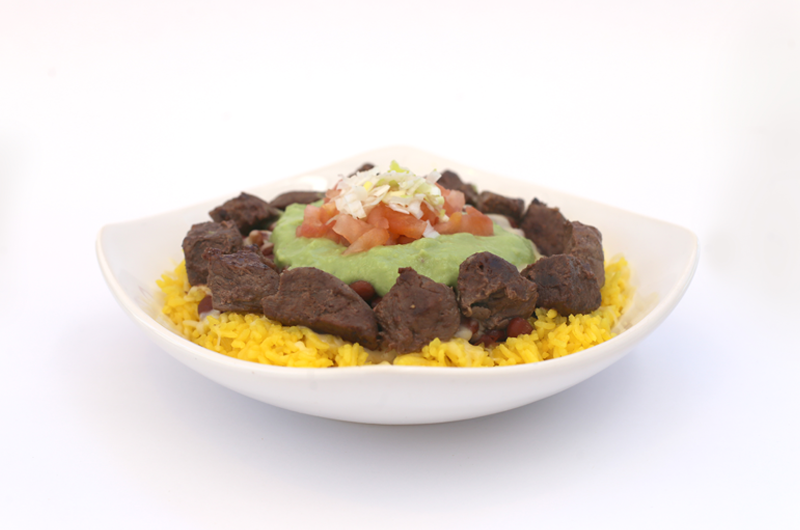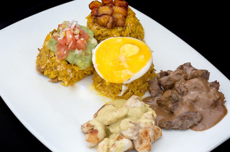Base de arroz; bañada con menestra de fréjol, lenteja o puré; con el cárnico de su elección pollo, lomo, camarón, chancho, o mixto y junto a una gama de productos que le da su nombre, guacamole el Mexicano, huevos fritos el Ranchero etc, y como si fuera poco, además una deliciosa salsa su elección (anderson, curry, vino con crema)