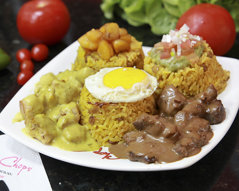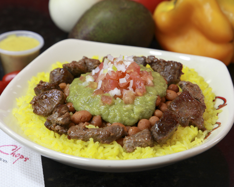 Combinación de tus chop chops preferidos con moro. Mexicano con guacamole, Ranchero con huevo frito, Tradicional con trocitos de maduro y dos cárnicos en sus salsas