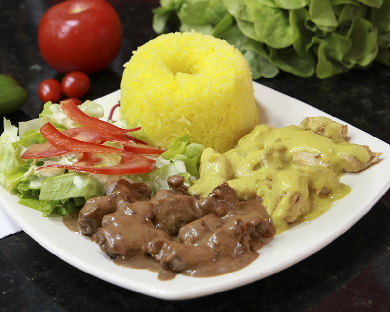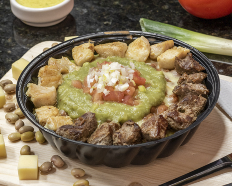 Base de arroz; bañada con menestra de fréjol, lenteja o puré; con el cárnico de su elección pollo, lomo, camarón, chancho, o mixto y junto a una gama de productos que le da su nombre, guacamole el Mexicano, huevos fritos el Ranchero etc, y como si fuera poco, además una deliciosa salsa su elección (anderson, curry, vino con crema)